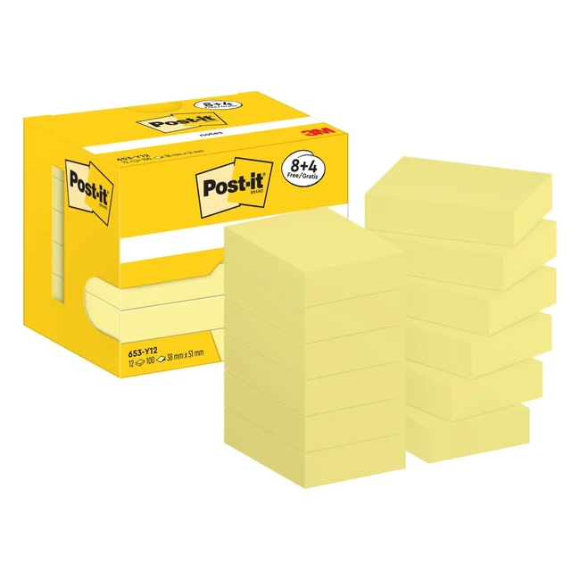 Post-it Notes Jaune Canari Pack Promo - Pack de 8 + 4 Blocs Gratuits - 100 Feuilles par Bloc - 38 mm x 51 mm - Notes Autocollantes pour Prise de Notes, Listes de Tâches et Rappels