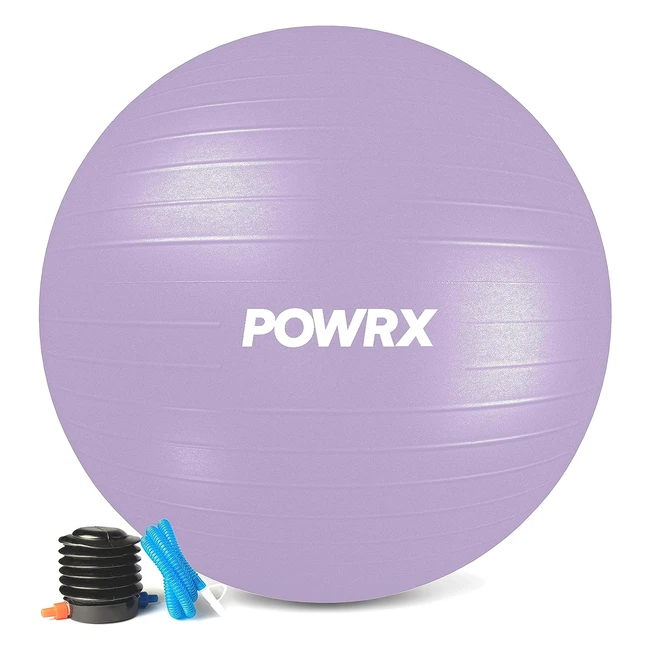 powrx Gymnastikball Lavendel Lila 75 cm Sitzball Antiburst inkl. Pumpe und Workout verschiedene Größen 55 65 75 85 95 cm und Farben