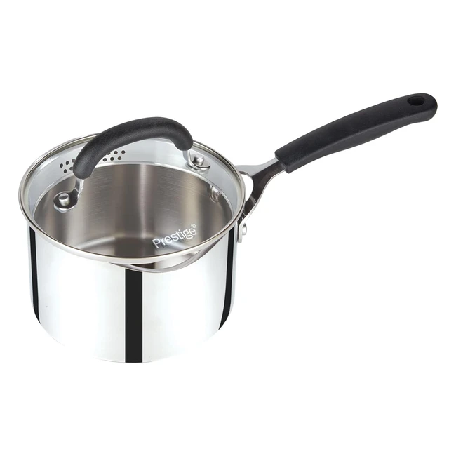 Prestige Stainless Steel Saucepan 16cm - Easy Pouring, Straining Lid, Induction Suitable