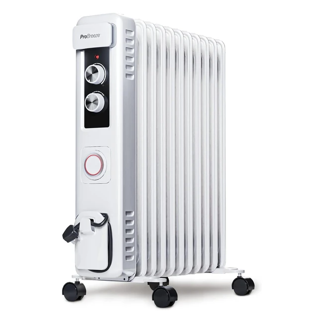 Pro Breeze 2500W Oil Filled Radiator - Slim, Portable Heater with 24-Hour Timer and Adjustable Thermostat