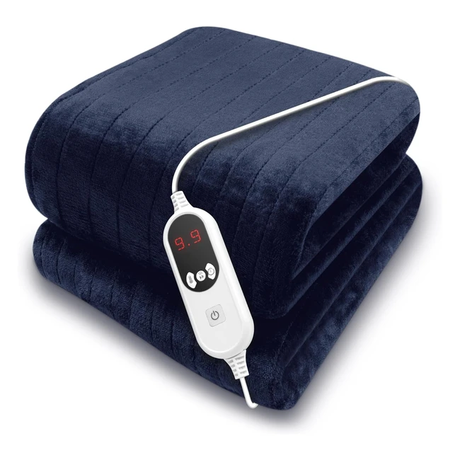 Purus Electric Heated Throw Blanket 160 x 120cm - Soft Fleece Overblanket with Timer & 9 Heat Settings - Navy