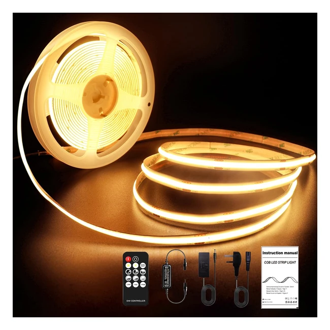 Roukle 8mm COB LED Strip Light - 10m Dimmable - Super Bright - CRI90 - RF Remote - UKCA Power Supply
