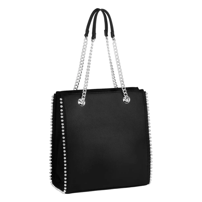 Sac à main CrazyChic porté épaule avec chaînes, clous, billes et perles en métal argenté pour femme - Noir