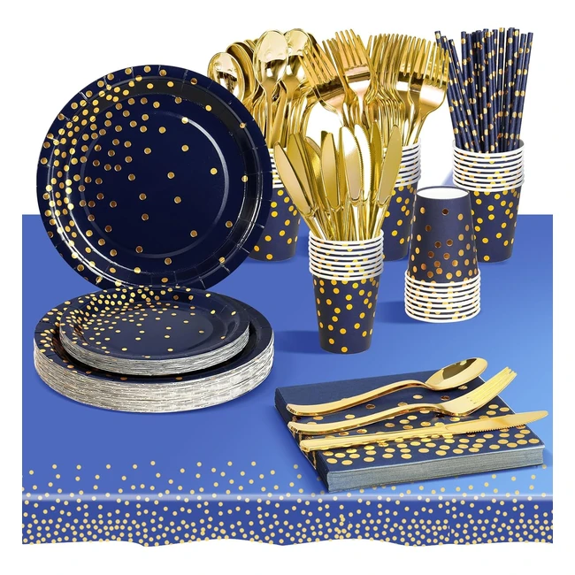 Set stoviglie per feste blu scuro oro - 226 pezzi - Compleanno, Matrimonio, Feste - Aipartywar