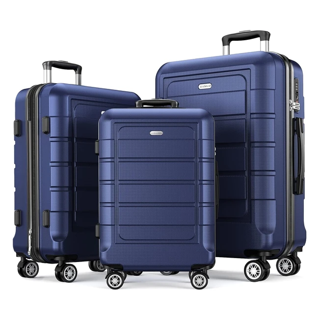 Showkoo Luggage Sets - Lightweight & Durable - 3 Piece Hard Shell PCABS - Spinner Wheels - TSA Lock - Deep Blue