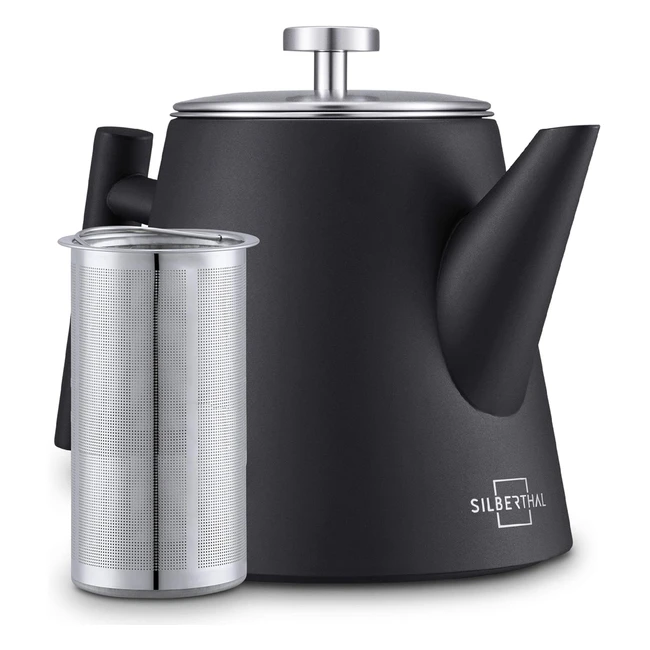 Silberthal Edelstahl Teekanne mit Siebeinsatz doppelwandig mit Thermofunktion hält lange warm 1 l schwarz