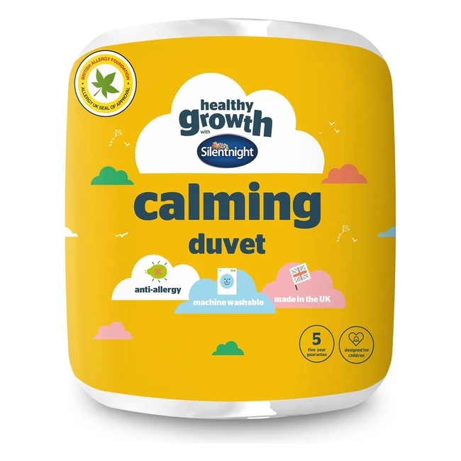 -25%Calming for better sleep! Drift into a peaceful sleep with a calming cuddle sensation from the Healthy Growth Calming Duvet. Extra filling for a clever weighted duvet that is cosy without being hot, perfect to calm, comfort, and relax your child. Promotes longer, deeper sleep comfortably cosy. Antiallergy antibacterial filling keeps duvet fresh and hygienic, actively protecting against bacteria and dustmites. British Allergy Foundation approved. Machine washable for hygiene and durability. Made for growing bodies and little brains.