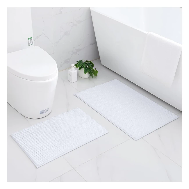 Smiry Non Slip Chenille Bath Mat Set - Extra Absorbent Soft Bathroom Mat - 2 Piece Quick Dry Machine Washable Bath Rug - White