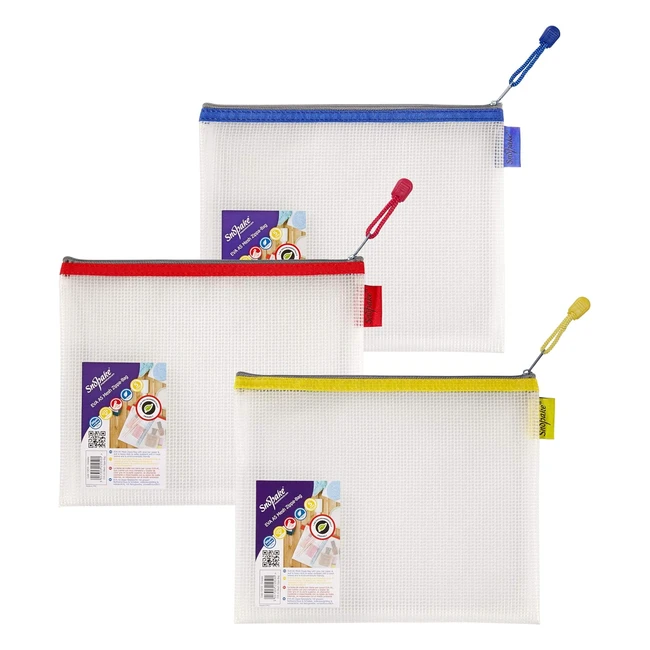 Snopake A5 Heavy Duty EVA Mesh Zippabag Pack of 3 - 255 x 205 mm - Transparent/Assorted - #15818