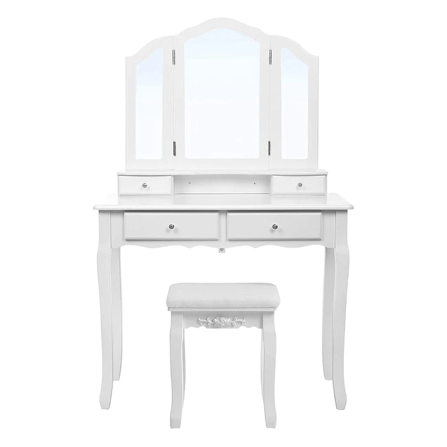 Songmics Large Dressing Table Set Trifold Mirror Makeup Desk 4 Drawers White RDT07W