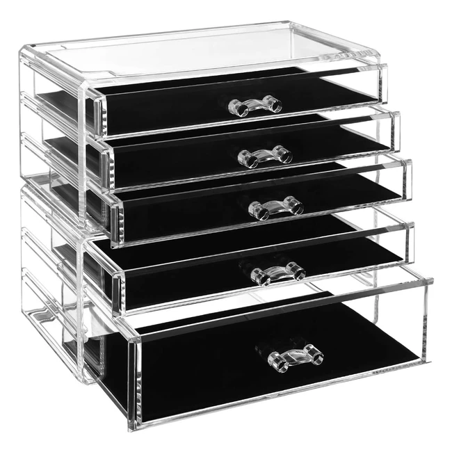 Songmics Makeup Organiser 2-Piece Storage Boxes - Stackable with 5 Drawers - Transparent - JMU32TP