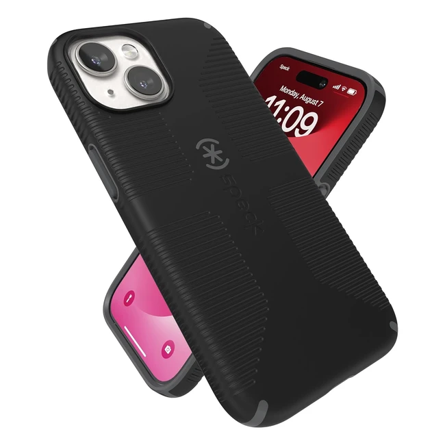 Speck iPhone 15 Case - Drop Protection, Grip - iPhone 15/14/13 - Scratch Resistant - Soft Touch - CandyShell Grip - Black/Slate Grey