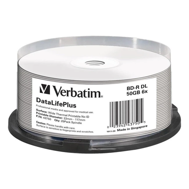 Spindle 25pc S - Verbatim BDR 50Go 6x - Blanc