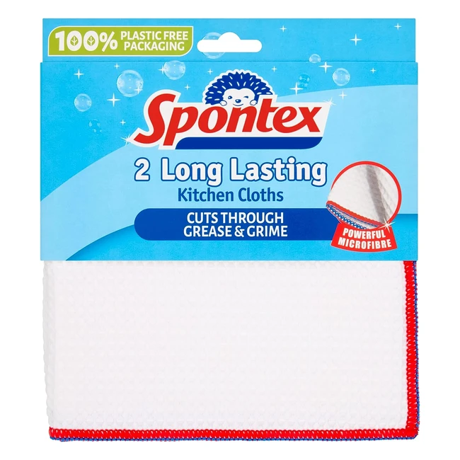 Spontex Long Lasting Kitchen Cloths Pack of 2 - Sparkling Results, Extraordinary Cleaning Power