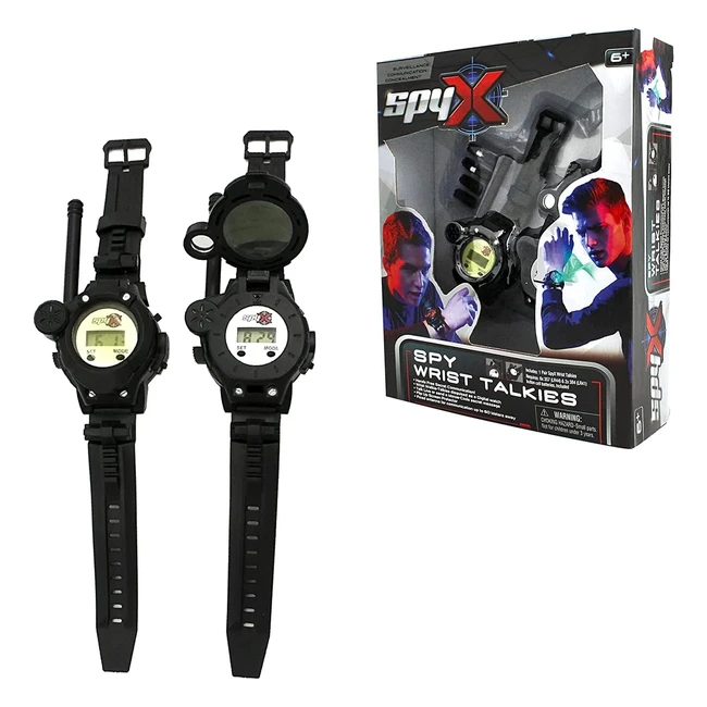 Spy comms on the go! SpyX Wrist Talkies let you talk to fellow agents even when on the go. Disguised as digital watches with adjustable straps. Send secret messages, talk directly to other agents using the walkie-talkies, or use the LED light button for silent Morse code messages. Full Morse code alphabet included in the instruction manual. Watch features a fixed antenna for communication up to 60m, built-in microphone, speaker, LED light button, and flip-up protective screen bezel. Valuable role play - playing as a spy is a fun way for kids to learn skills and create imaginative adventures. Suitable for children ages 6 and up. Collect all SpyX toys for the ultimate secret agent experience!
