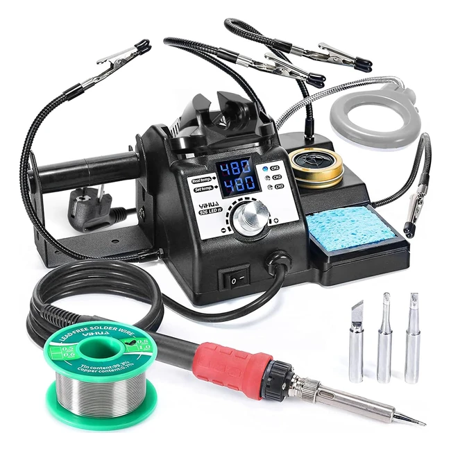 -15%Profitez de ce kit de soudure complet Yihua 926LEDIV 110W EVO avec 4 mains secourables, loupe LED, 3 pannes supplémentaires et 35g de fil à souder sans plomb. Réglez facilement la température de 90°C à 480°C grâce au programme de stabilisation de la température PID. Fixez les 4 mains secourables pour tenir votre circuit imprimé sous différents angles. Prolongez la durée de vie de la panne et de l'élément chauffant grâce au mode veille. Garantie fabricant de 12 mois exclusive en Europe. #soudure #électronique #bricolage