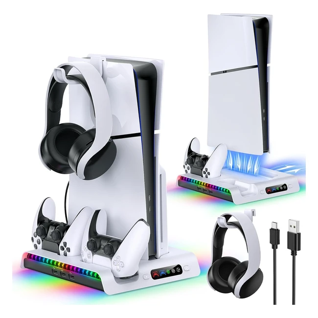 -23%Station de charge rapide et pratique pour PS5 Slim. Ventilateur silencieux, chargeur pour 2 manettes en 3-4h, 3 vitesses ajustables, 9 lumières RGB, design ergonomique avec 3 ports USB. Ne manquez pas cette opportunité!