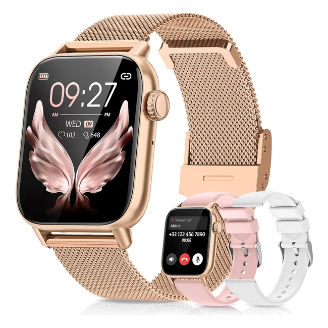 Swgota Montre Connectée Femme - Bluetooth Appel 3 Bracelets Santé Sommeil Fréquence Cardiaque SPO2 110 Modes Sport - 183 Smartwatch Android iOS Or Rose