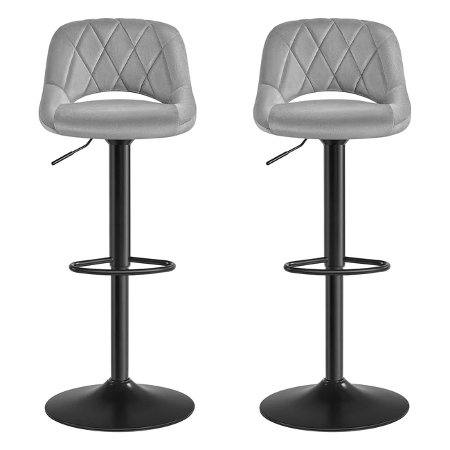 Taburete de Bar Songmics Juego de 2 Sillas de Cocina | Estable y Ajustable | Terciopelo | Gris Claro