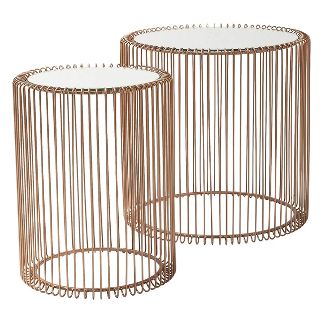 Aggiungi un tocco di lusso e stile al tuo spazio con questo set di tavolini d'appoggio Wire Brass Kare Design. Design in oro per uno stile lineare ed elegante. Ripiano in vetro di sicurezza specchiato per un tocco di raffinatezza e luminosità. Facile da pulire con piano staccabile. Ottimo come tavolino da caffè o come supporto per oggetti decorativi. Acquista ora e trasforma il tuo ambiente!