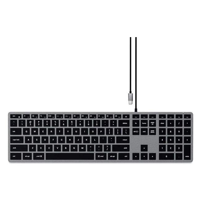 Teclado Satechi Slim W3 Iluminado con Cable y Keypad Numérico - Conexión USB-C - Diseño QWERTY Inglés