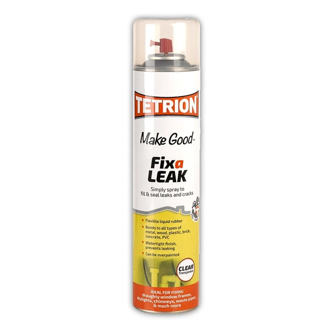 -40%Protect your surfaces with Tetrion Make Good Fix a Leak! This liquid rubber in a can creates a rubberised, waterproof coating that effectively prevents moisture penetration. Say goodbye to rust, corrosion, and other problems associated with moisture ingress. Use it on roof lights, ducting, vinyl, plastic, metal, wood, masonry, concrete, brick, plant pots, gutters, and downspouts. The easy-to-use aerosol format allows for a high build, tough, and flexible seal. Don't wait, seal those fine leaks and cracks today! Can be overpainted and dries to a clear, low gloss finish. Buy now!
