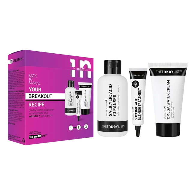 The Inkey List Back to Basics Breakout Recipe | Clear Skin Starter Kit | Salicylic Acid Cleanser | Omega Water Cream | Succinic Acid Blemish Treatment
