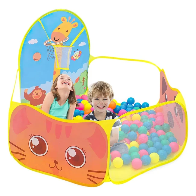 Tienda Campaña Infantil Piscina de Bolas Ruspela Niños - Pop Up Plegable - Carpa de Juegos de Dibujos Animados con Aro de Baloncesto - No Incluye Pelotas