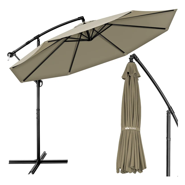 Tillvex Sonnenschirm Braun 300 cm - UV-Schutz, Wasserdicht, Kurbel
