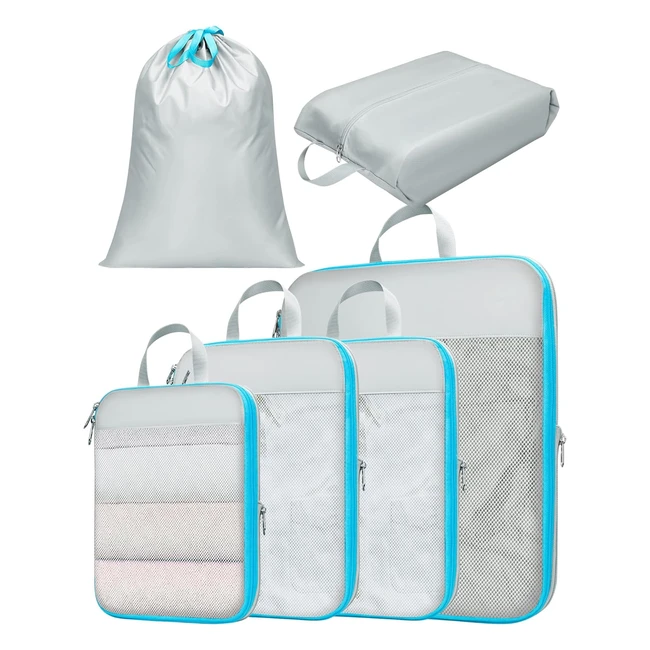 TorryPack Compression Packing Cubes 6 Pack - Expandable Travel Organizers - Shoe & Laundry Bag - Gray