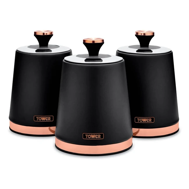 Tower T826131BLK Cavaletto Set of 3 Storage Canisters - Tea Coffee Sugar - Black & Rose Gold