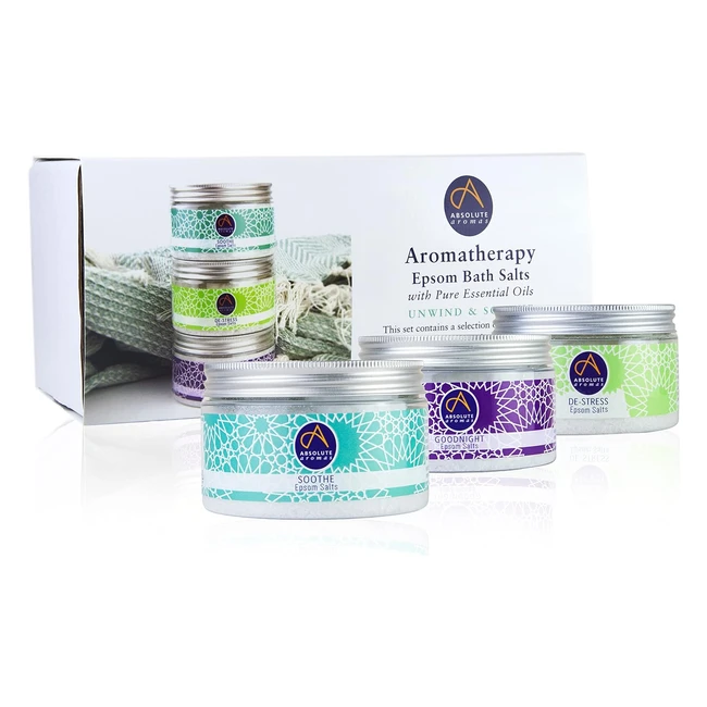 Unwind & Soothe Epsom Salt Gift Set - Absolute Aromas - 3 x 300g - Goodnight, Soothe, Destress