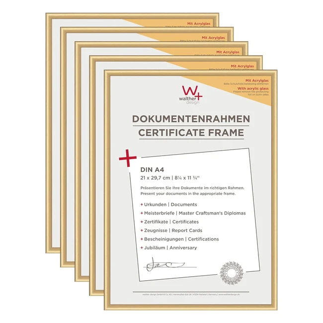 Walther Design Bilderrahmen Gold 21x297 cm DIN A4 mit Kunstglas - 5er Pack