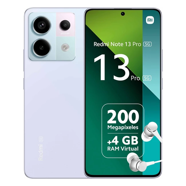 Xiaomi Redmi Note 13 Pro 5G - 12512GB - Pantalla 6.67" AMOLED 120Hz - Snapdragon 7 Gen 2 - Triple Cámara 200MP - Hypercharge 67W - Morado