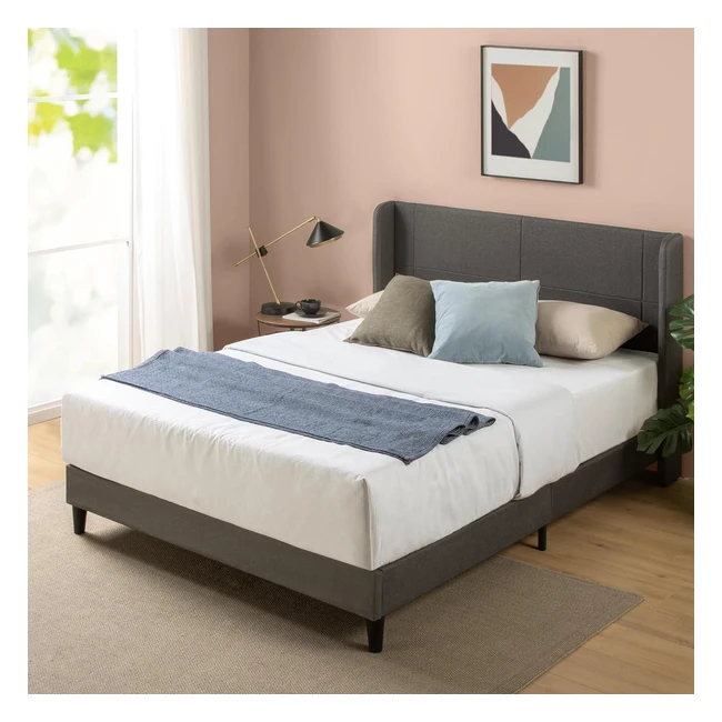 Zinus Sasha Bettgestell mit gepolstertem Kopfteil 100 x 200 cm Dunkelgrau nachhaltiges Bambus-Lattenrost einfache Montage
