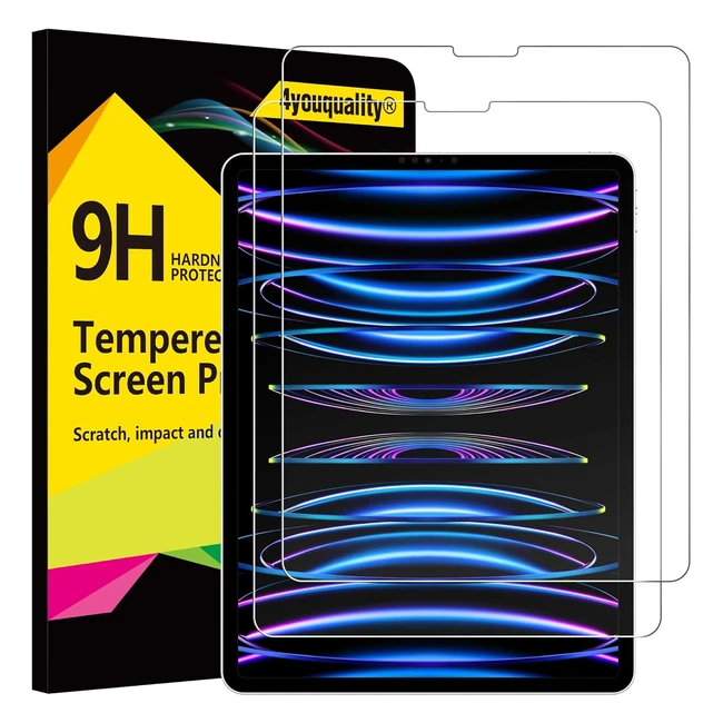 4youquality 2pack iPad Pro 12.9 inch Screen Protector 2022-2018 Model Face ID Compatible 9H Tempered Glass Film