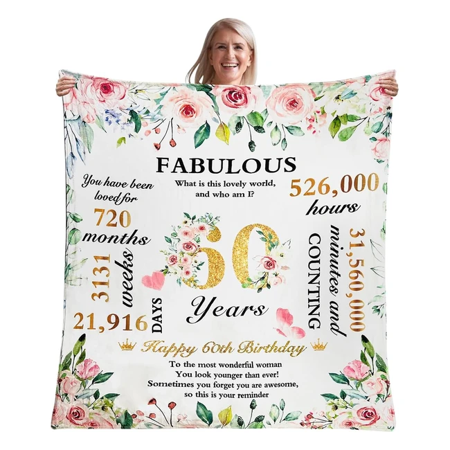 60th Birthday Gifts for Women - Soft Flannel Throw Blanket - Premium Design - 50x60 - Skin-Friendly