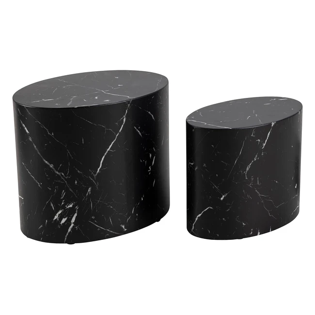 AC Design Möbel Rico Couchtisch in Schwarz Marmoroptik Set aus 2 platzsparenden ovalen Beistelltischen für das Wohnzimmer moderne Nesting-Tische