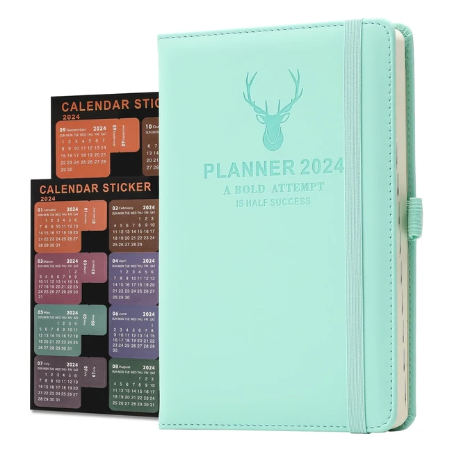 Agenda Académica 2024 A5 Azul - Planificador Mensual y Diario - Marcadores - Calcomanías - Bolsillo Interior