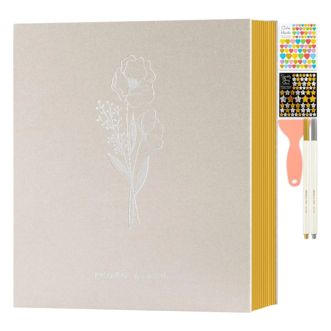 Album Photo Autoadhesif Scrapbooking - Lin Magnétique - 20 Feuilles - 40 Pages - A4 A5 - Stylos et Autocollants Inclus