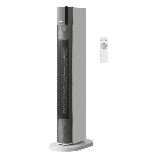 Amazon Basics Eco Oscillating Portable Tower Heater 2200W White - 2 Fan Speeds 3 Heat Settings Timer Remote Control