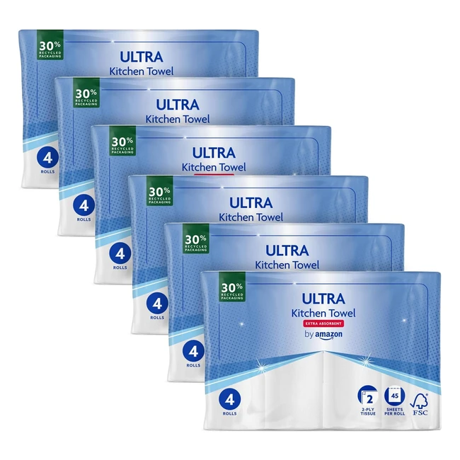 Amazon Ultra Rollo de Cocina Extra Absorbente - 24 Rollos, 6 Paquetes de 4 - Tecnología Avanzada