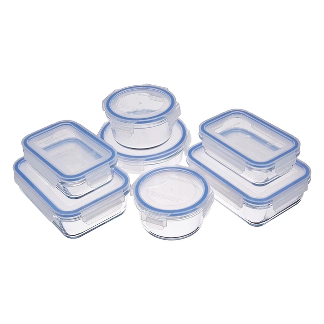 AmazonBasics Glasbehälter für Lebensmittel mit Deckel, 7-teiliges Set