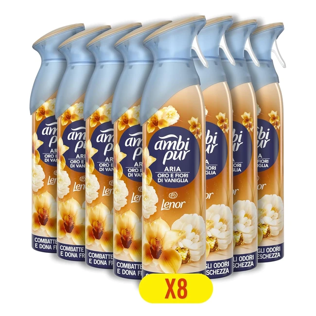 Ambi Pur Deodorante Ambiente Spray - Confezione da 8 - Fragranza Orchidea Dorata - 100% Naturale - Combatte Odori