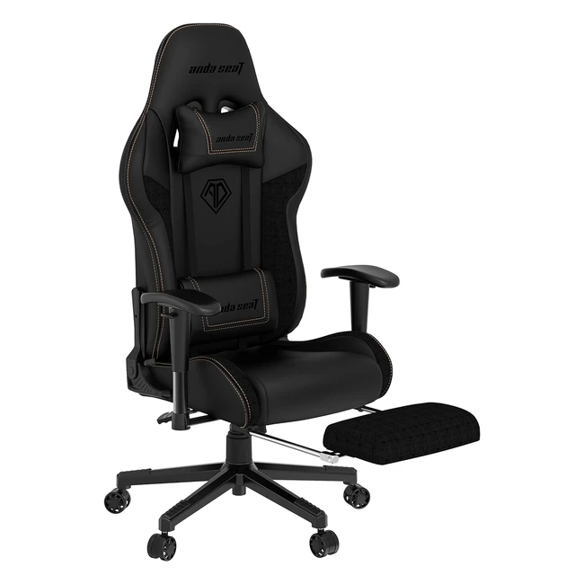 Anda Seat Jungle 2 Pro Gaming Chair - Ergonomic Office Chair with Footrest - Heavy Duty Leather Design - Comfortable Back Support - Black