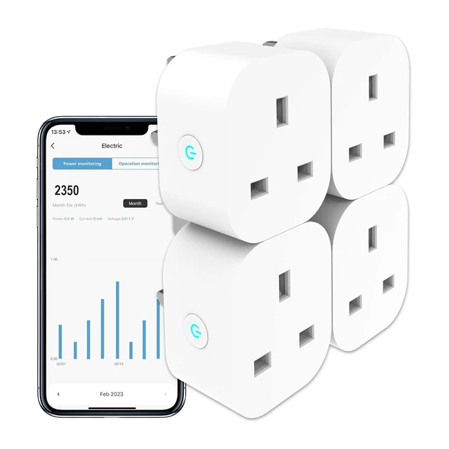 Antela Smart Plug with Energy Monitoring - Alexa Voice Control - WiFi Plug - Smart Life App - Wireless Remote Control - Timer Function - Work with Alexa and Google Home - 13A - 4 Packs