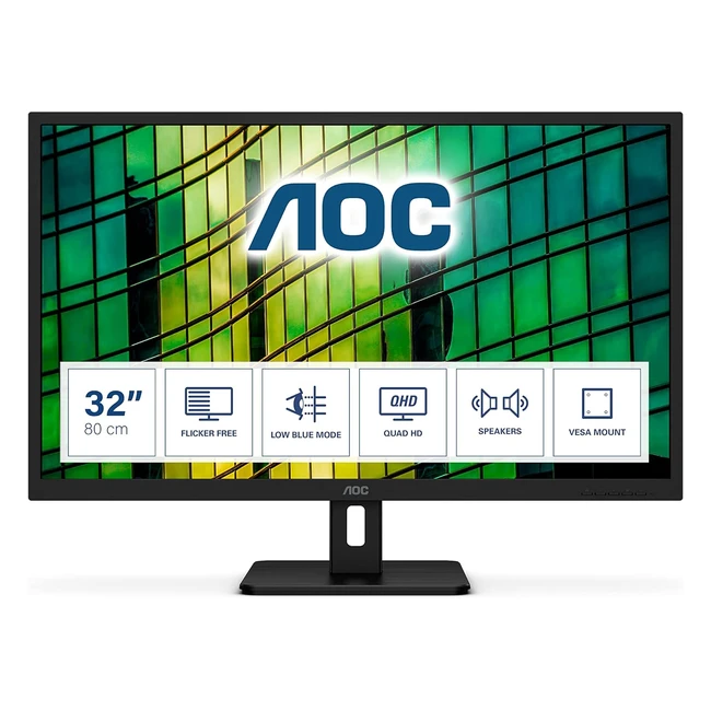 AOC Q32E2N 31.5 Inch QHD Monitor 75Hz 4ms IPS Speakers FlickerFree LowBlue Light