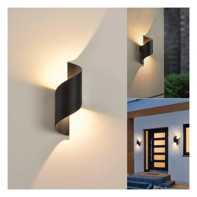 Applique Murale LED Intérieur/Extérieur 10W 3000K Blanc Chaud - Lampe Moderne Up Down Luminaire Étanche IP65 - Spirale Métal pour Bar/Chambre/Coucher - Noir