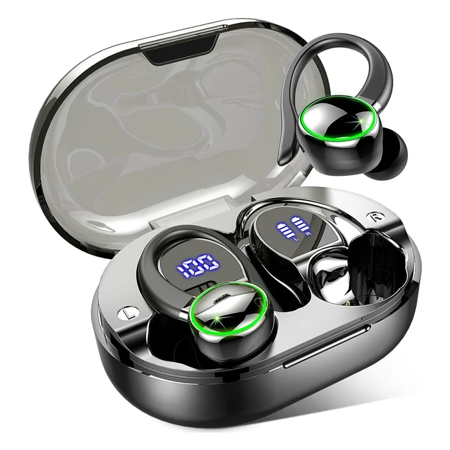 Auriculares Deportivos Inalámbricos Bluetooth 53 - Sonido Premium - 48h Reproducción - IP7 Impermeable - Pantalla LED - Negro