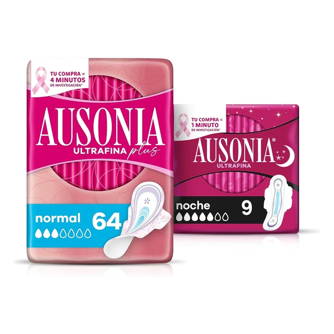 Ausonia Ultrafina Plus - Pack de 2 - 64 compresas normales + 9 compresas noche - Protección todo en uno